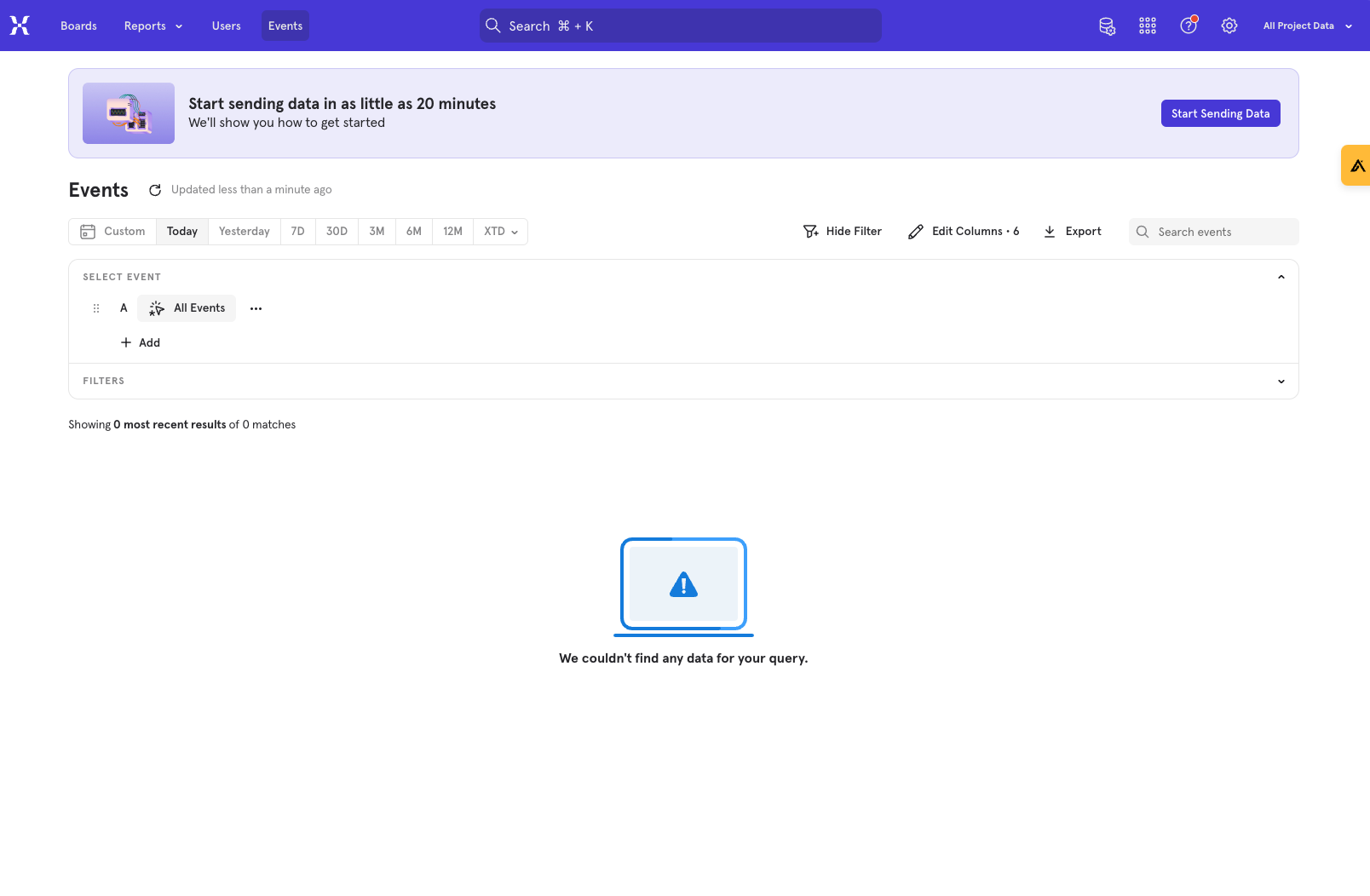 Head over to the Events tab to ensure that your events are being recorded. Test your product to trigger a few events; if they appear in Mixpanel, you're good to go!