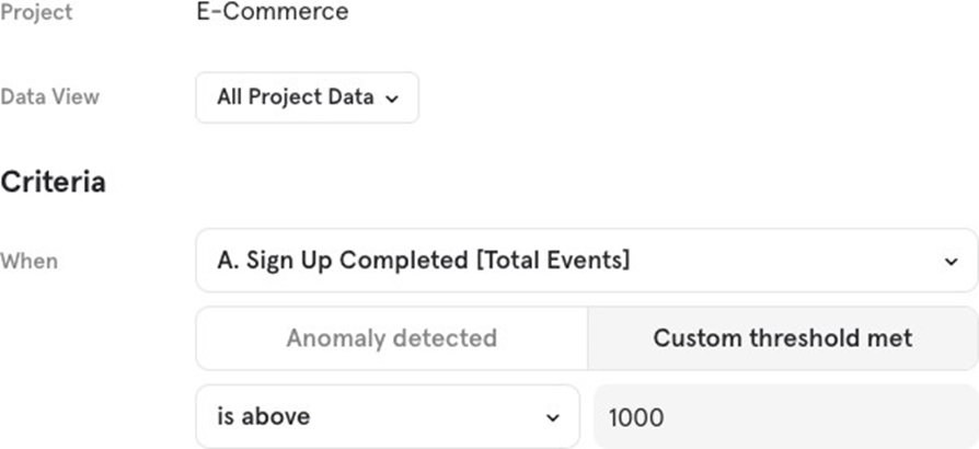 For example, if you want to be alerted when daily sign-ups exceed 1,000.