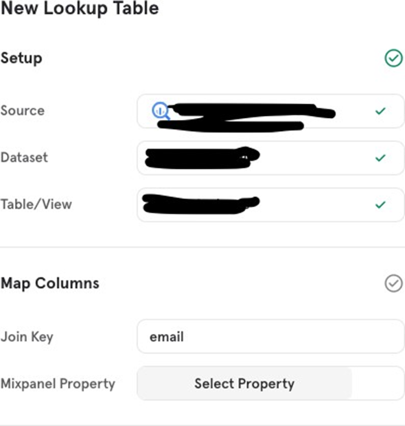 - Mixpanel Property: This is the existing Mixpanel property that the Join Key will map to. When they match, the data from the warehouse will enrich that property with new or updated information.
