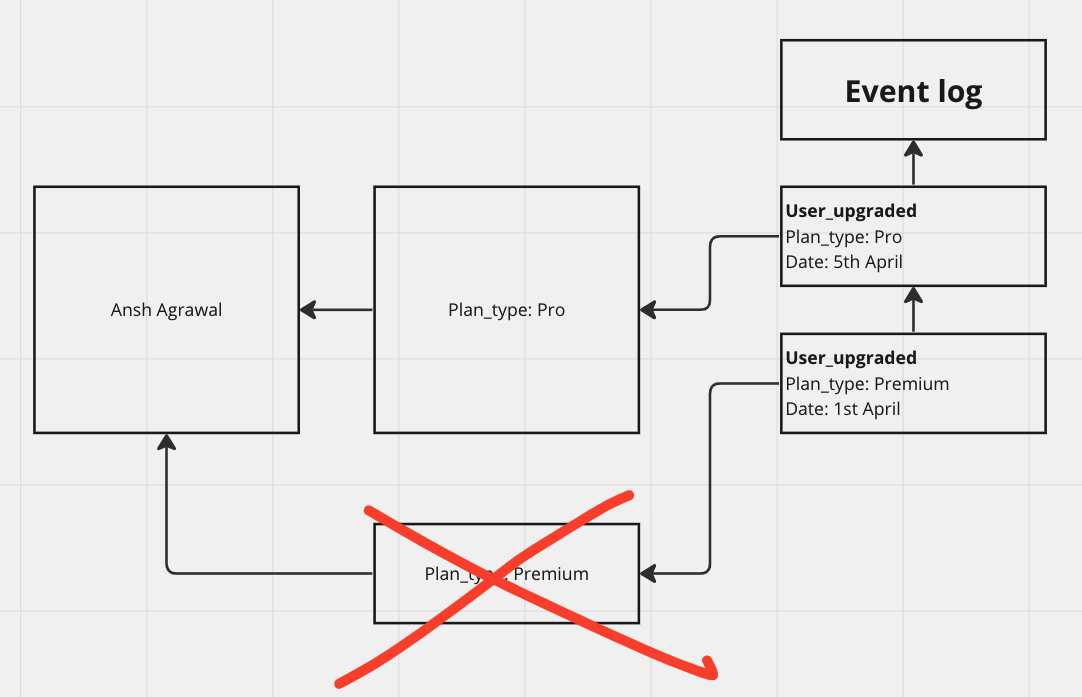 When the "user_upgraded" event occurs, and we set "plan_type" as a profile property, it gets attached to the user.